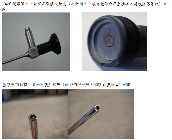 ①.目視窺鏡圖像有明顯不清晰出現(xiàn)邊緣發(fā)黑、全影像無法目視的情況此為柱鏡破損、破碎。如有放大鏡由進拉遠(yuǎn)能看到明顯碎紋或碎渣!